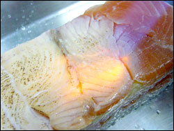 -When cut, the best specimens are uniformly white without specks or blemishes.