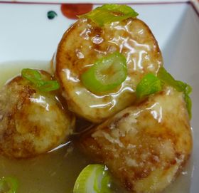 Taro wholly fried and seasoned with umeboshi/pickled Japanese plums