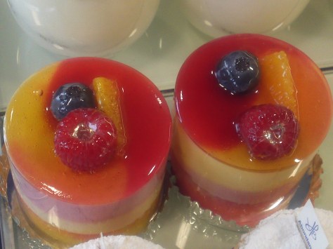 Taking a peek from the top at the beautiful fruit jelly and decorations!