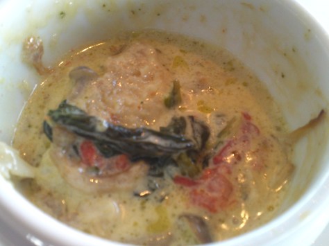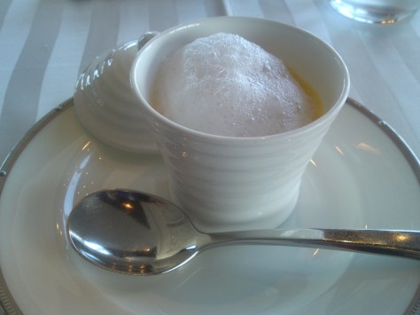 The “fish course” consisted of a small pot of fricassee sole/shitabirame and mushrooms in Bourguignonne cream sauce.