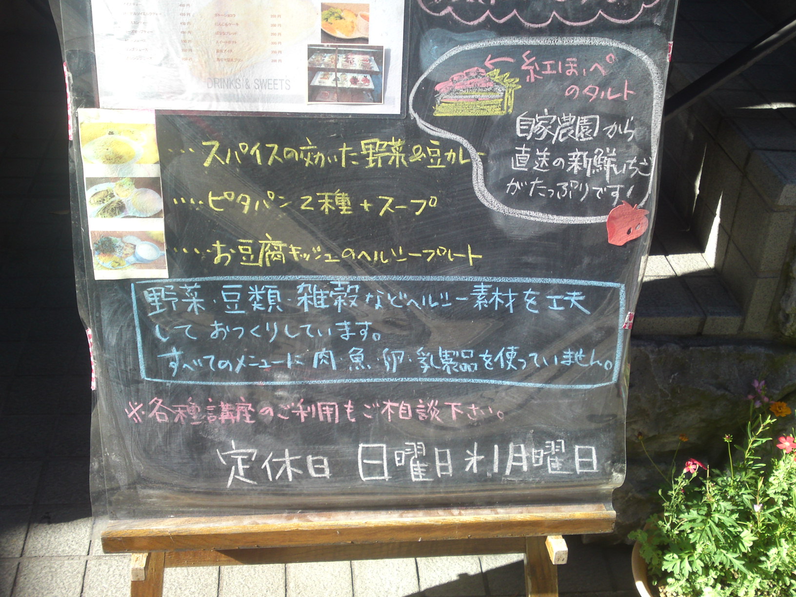 Strong points: Vegetarian and ethnic cuisine. Easy-going atmosphere for all ages and trends. Home-made umeshu and biscuits. Can prepare a vegan meal with sufficient advance reservation.
