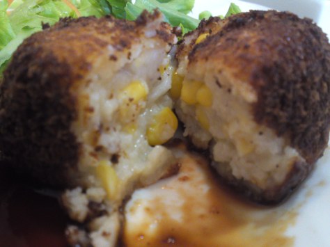 I was given a great snack of re sweet potato and edamame salad while my sashimi plate was being prepared!