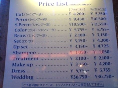 Hairdressers and beauty salons’ boards are always a great source of funny English. “Brow” actually means “Blow”, “Perm” means Premanent” and “S.Perm” (Holy Macaroni!) means “Special Permanent”!