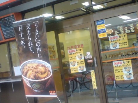 Gyudon/bowl of rice topped with shredded beef is making for brisk business, especially at lunch time for restricted budgets. As for the taste, I wonder….