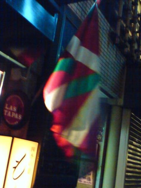 The only place harbouring the Basque flag. A Tapas restaurant, naturally! Sorry for the fuzzy pic, but not that easy to take on a windy night!LOL