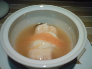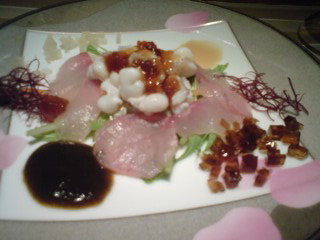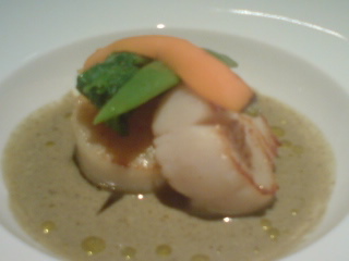 “Hotate no Poare/sauteed scallops”: I won a little contest on that one. I was the only one to understand that fresh cream and sieved seaweed has been included in the sauce!