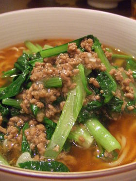Here is a simple recipe combining ramen with minced pork and bee and komatsu leaves: