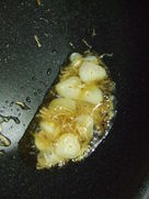 -While the ramen are boiling, In a frypan fry the ginger and garlic in sesame oil over a small fire so as to bring out flavour.