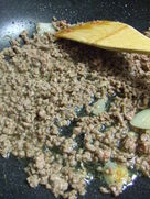 -Once the aroma of the fried chopped condiments come out add the minced meat and fry over a medium high fire.