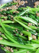 -Once the meat is well cooked, throw in the komatusna, lower stems irst for a few seconds and then all the rest, over a strong fire.