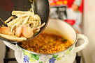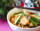 -As soon as you are satisfied with the consistency of the ramen add fried squid and shrimps and leeks cut in proper size.