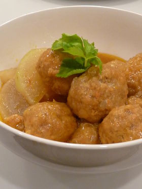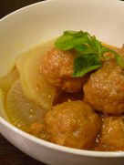 Drop in sliced daikon and meatballs.