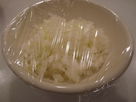 -Cut the onion into thin slices. Drop them inside an oven-resistant dish. Cover with cellophane paper. Cook in microwave oven for 2 minutes at 600 Watt. Let cool down completely.