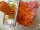 Grate carrot and mix with minced pork.
