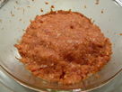 -Drop the pork belly and chicken lean breast in a food processor and mince. Add the sake, panko/breadcrumbs, ginger juice, beaten egg and a little salt. Mix.