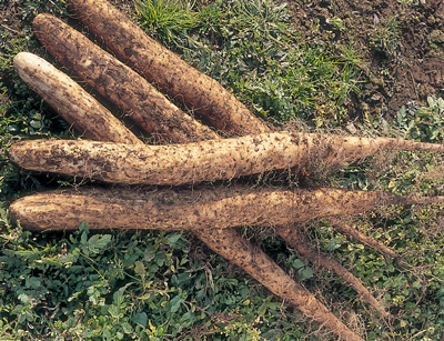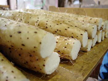 The yam used in this particular recipe is “naga imo/長いも or long yam”.