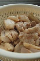 -Cut the chickeninto small bite-sized chunks amd marinate with soy sauce and Japanese sake.