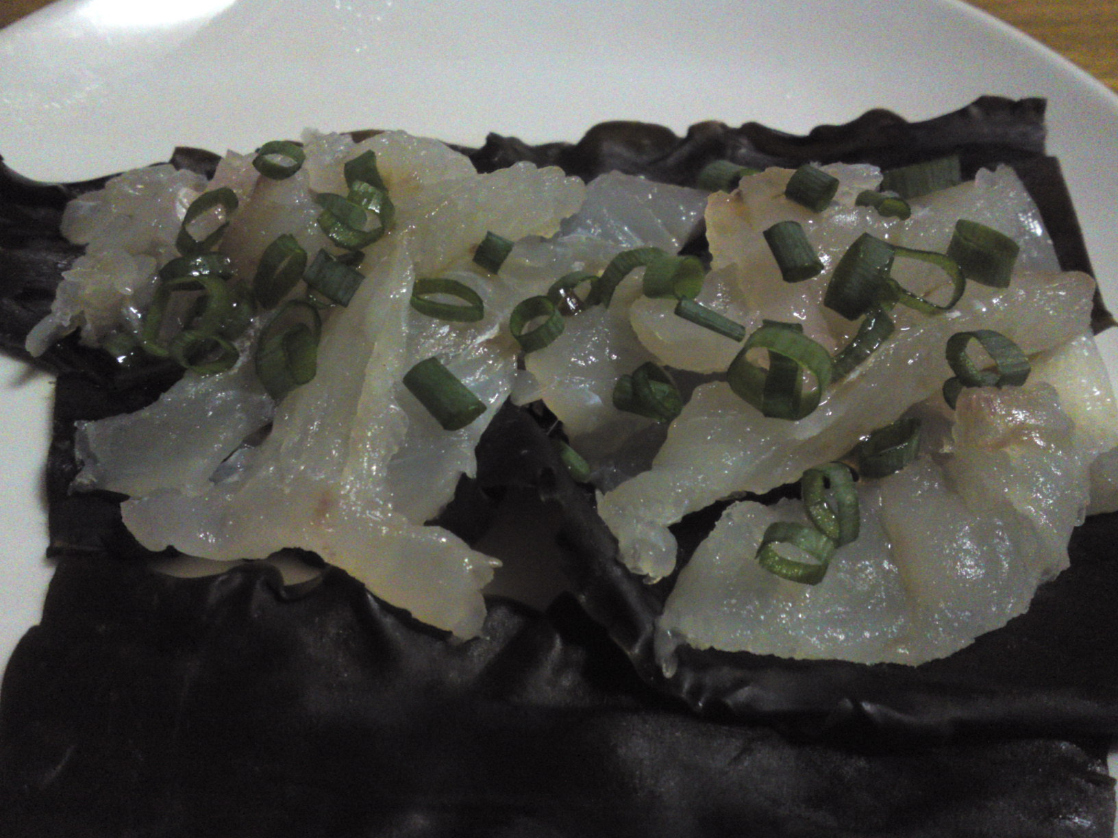 The Missus prepared this tasty sashimi dish as an appetizer for my first cup of Japanese sake last night.