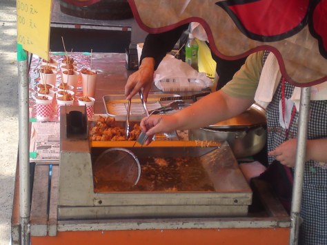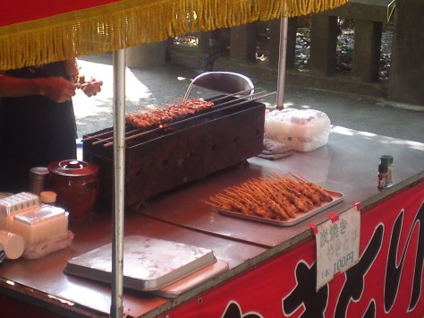 I walked across the other side of the gardens surrounding the Shrine on my way back to discover more stands. Japanese karaage/deep-fried chicken! Certainly better than those of that fake army officer!