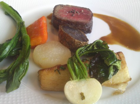 Roasted beef with fruit sauce and mashed potato!