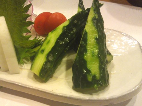 Ten cut the flesh across into one bite size (small size by European/American standards!).