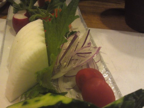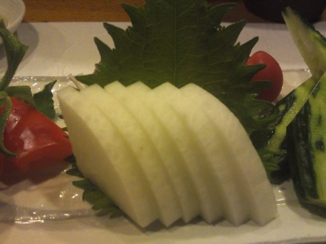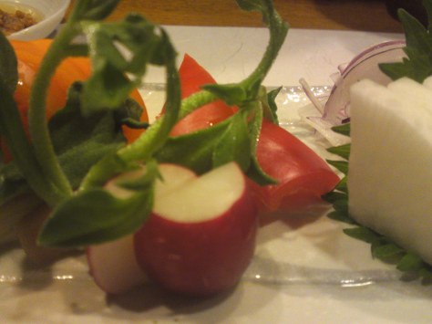 Using the shell (cleaned in cold running water and wiped), arrange sashimi as above. Very easy!