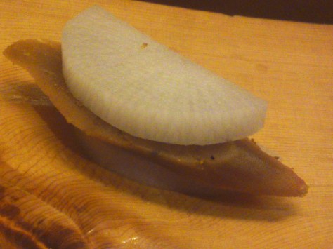 Special service: daikon and botarga/mullet roe/karasumi sandwich!