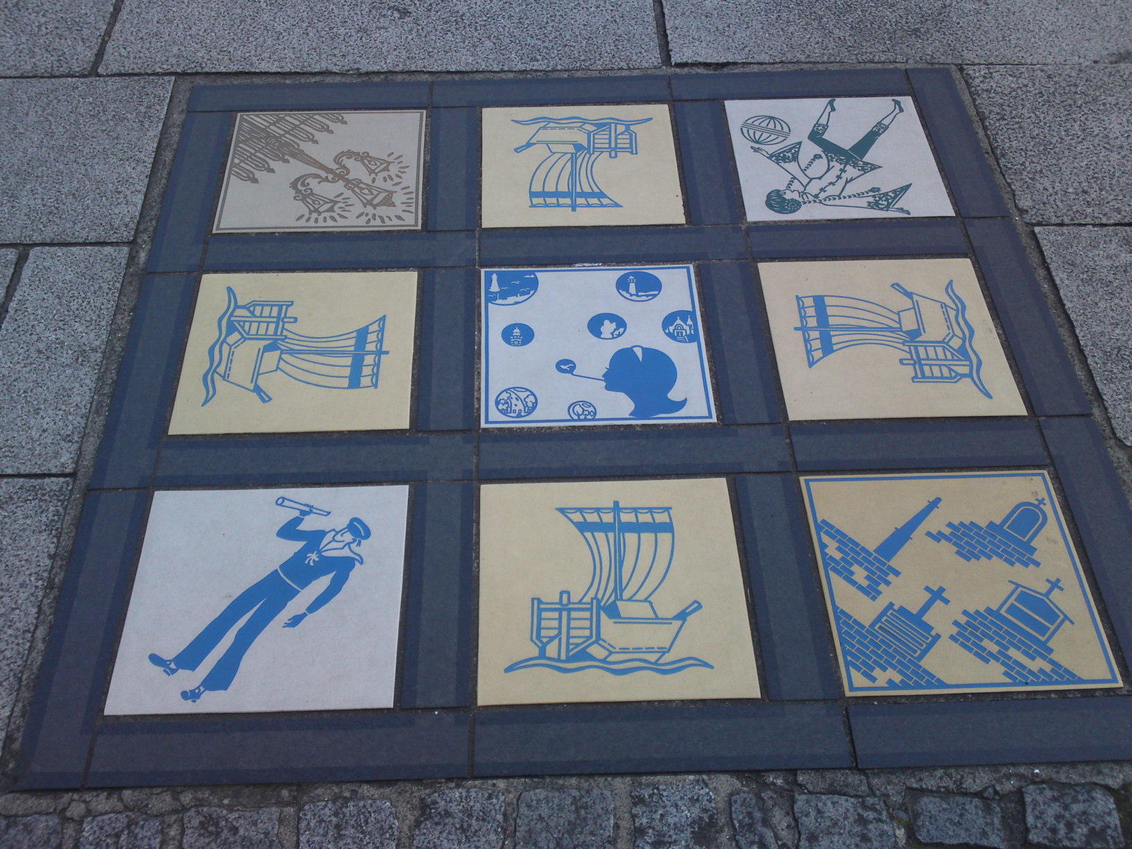 Pavements in Yokohama City, especially in the vicinity of Minatomirai are decorated with all kinds of tiles and plaques to attract passers-by’s eyes and and entice them to the many sights, views, shops, events and places in town!